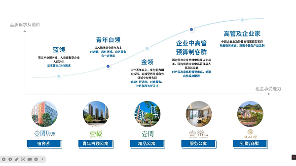 目前,招商蛇口招商伊敦的公寓相关业务已形成完善的“壹”系列自有品牌,三大复合产品线包括壹棠服务公寓、壹间精品公寓和壹栈人才公寓,为青年白领、城市精英和高端商务客群提供“全周期租住解决方案”。