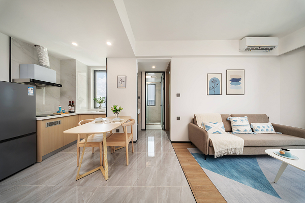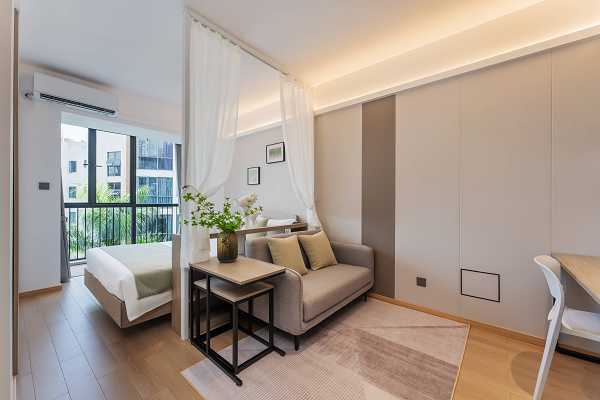 长租公寓的主要客群是20-35岁的都市年轻白领、新市民。他们的审美和需求有高度的共性——追求简约与品质感。原木风和MUJI风传递出的简约、自然和品质感,正好契合了客户的心理需求。招商蛇口旗下壹间公寓,整体装修采用MUJI风,利用简洁的线条和中性色调,营造出干净、明亮的空间感,符合当代年轻人对居住环境的审美需求,同时家具和装饰以简约为主,减少冗余元素,强调空间的开阔与通透。