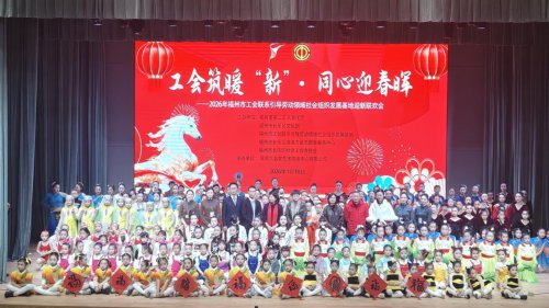 岁末暖意浓,新春脚步近。1月10日下午,“工会筑暖‘新’・同心迎春晖”迎新联欢会在福州市第二工人文化宫温情启幕。活动由福州市工会联系引导劳动领域社会组织发展基地牵头,联合市第二工人文化宫、长乐区文化馆、长乐区漳港力量志愿者服务中心、长乐区社会工作者协会主办,为福州新区(长乐区)460余名职工及子女奉上一场集欢乐互动、文艺展演、暖心祝福于一体的新春盛宴,让职工家庭在欢声笑语中感受工会温情,喜迎新春佳节。