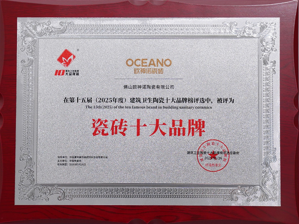 二十余载深耕厚植,欧神诺收获了行业与市场的双重肯定。其先后荣膺"瓷砖十大品牌""智造十强""领军品牌"等重磅奖项,入选首批"广东好建材"名单,斩获2024年度广东建筑材料科学技术奖特等奖,连续多年位列“中国500最具价值品牌”排行榜,品牌价值与综合实力稳居行业第一梯队。