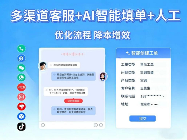 同时,AI填单能够自动提取客户关键信息,快速生成服务工单,减少了人工录入的工作量和错误率,不仅优化了客服服务流程,还帮助企业降低了运营成本,提高了整体服务效率。