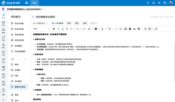 智能辅助决策:AI分析项目健康度,自动生成阶段评审报告,辅助决策委员会快速通过或叫停项目。
