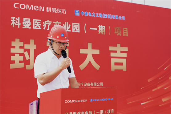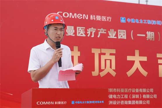 中建电力党委书记、董事长刘天军在随后的讲话中指出,自项目启动之初,公司就将其定位为光明的“标杆工程”。主体封顶后项目将进入二次结构、装饰装修的新阶段。刘天军坚信,这座产业园将成为科曼医疗推动“国产替代”、链接上下游、增强行业应急保障能力、打造“研发+智造”新标杆的核心载体,持续为医疗产业发展注入新动能。