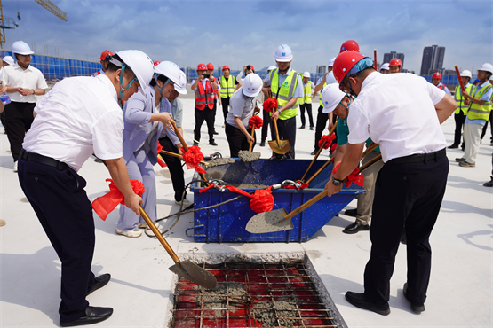 上午10点18分,在全体参会人员的共同见证下,公司及合作方领导手持象征“八方来财”的金铲,共同为项目浇筑最后一铲混凝土。随着混凝土落地,科曼医疗产业园(一期)主体结构正式封顶。